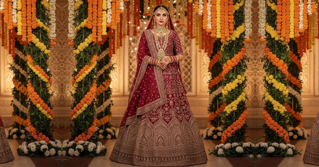 The Lehenga remains the ultimate choice for the main wedding day (Barat). This three-piece ensemble features a heavily flared, floor-length skirt (Lehenga), paired with a short, fitted blouse (Choli) and a dupatta (scarf). The bridal version is almost always drenched in intricate handwork like Zardozi, Dabka, Kora, and Naqshi—techniques passed down through generations of artisans. It is the pinnacle of the Pakistani bridal silhouette, exuding unmatched grandeur.